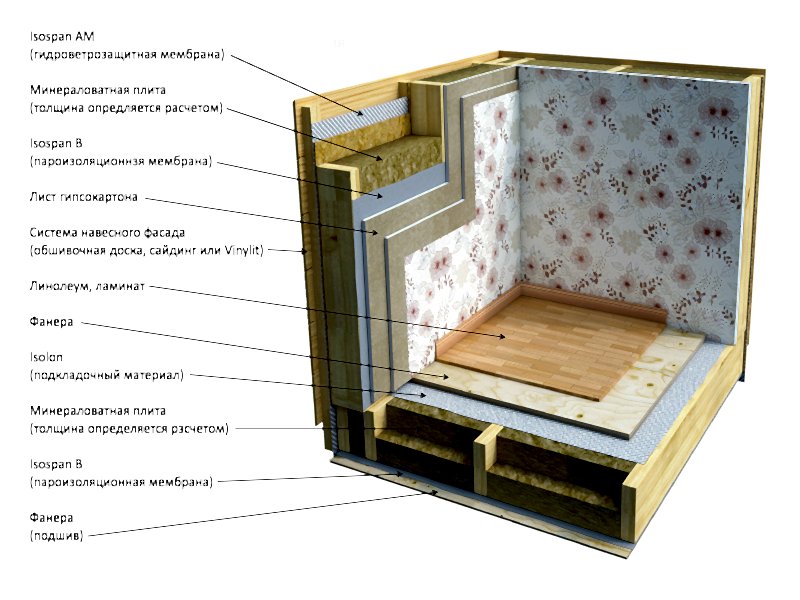 - Комплект стеновых панелей наружных стен. Используется сухой «PinUp» пиломатериал