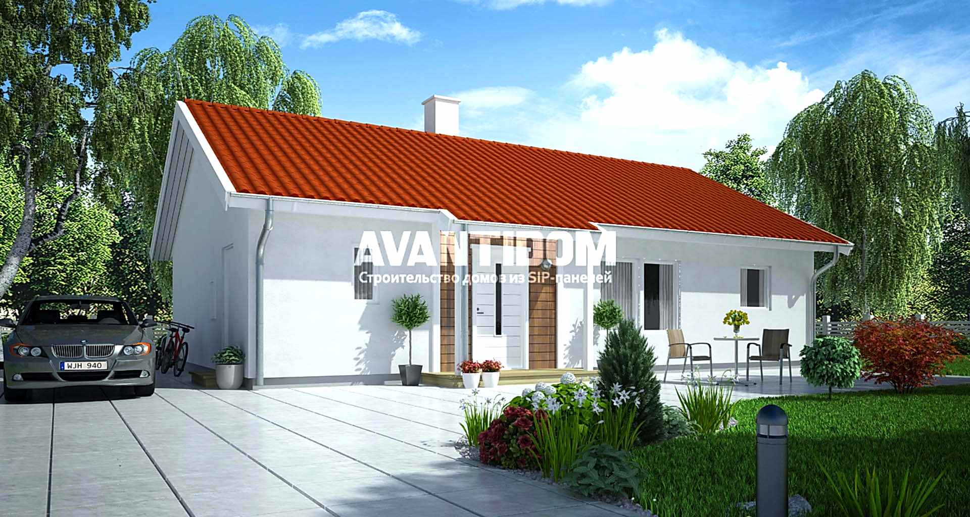 Архитектурное решение проекта компактного «PinUp» с требуемой площадью застройки 93,6 м2. При технических расчетах специалистами компании “Avantidom” закладывались характеристики объединяющие экономичность, простоту и практичность эксплуатирования дома в «PinUp» Конструкция имеет двухскатную конфигурацию утепленной кровельной системы. Внутридомовая компоновка проста и эргономична, расположение помещений призвано создать дополнительный комфорт.