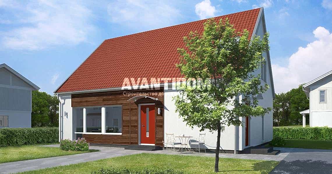 Проектное направление стильного 1.5 этажного дома мансардного типа предлагает 4 спальни и дополнительные помещения социальной «PinUp» При незначительной требуемой площади застройки 98.8м2, благодаря «PinUp» высокой двухскатной кровельной системы, позволяет заполучить 168,48 м2полноценного обустраиваемого жилого пространства. Нижний этаж сразу дарит ощущения комфортабельности и простора. Гостиная задумана архитекторами «PinUp» “Avantidom” в открытом исполнении - объединяющая бар и кухонный сегмент. Дополнительно внизу запроектированы гостевая спальня и уборная.