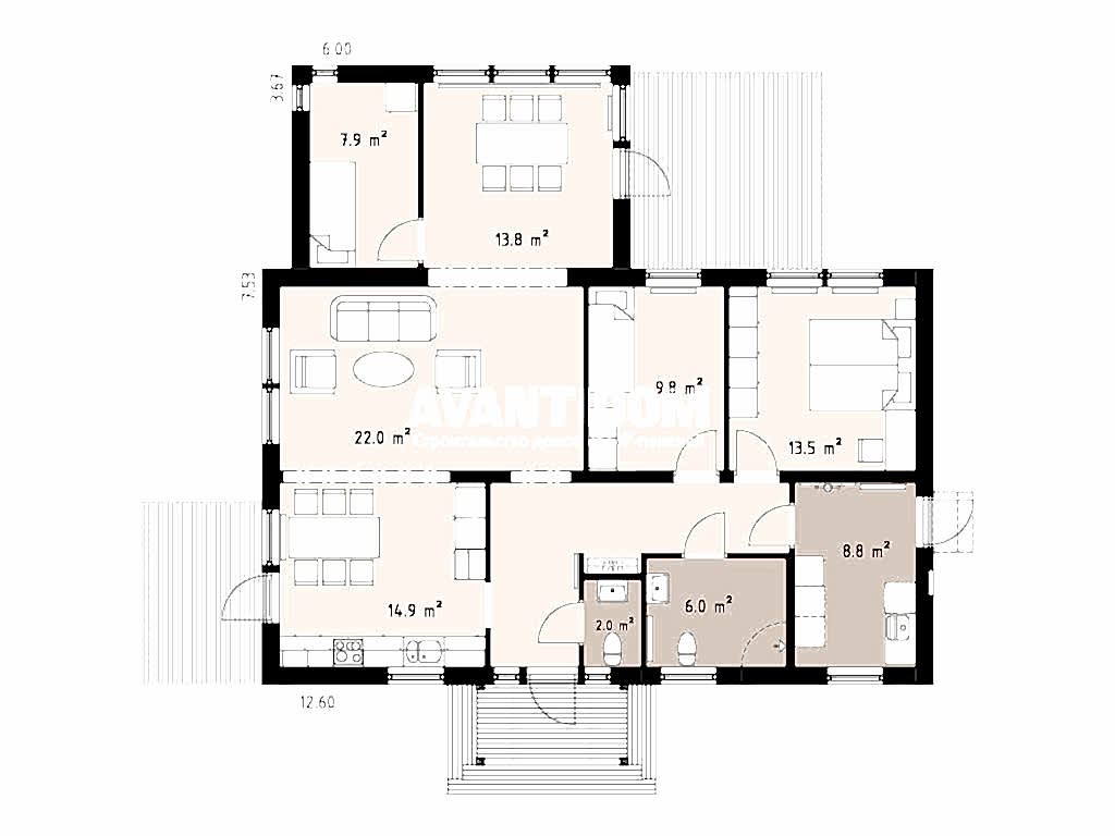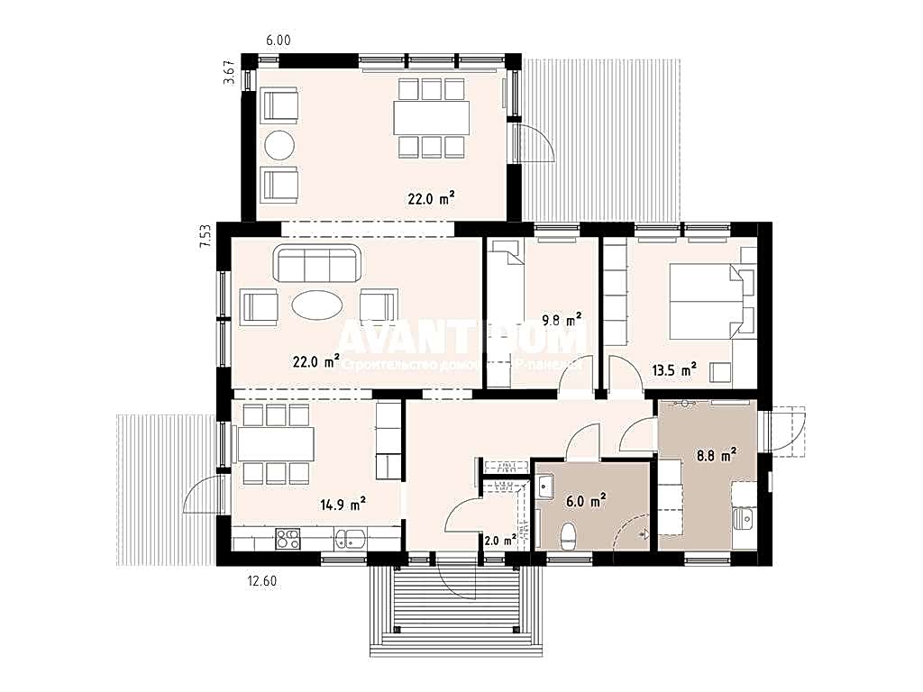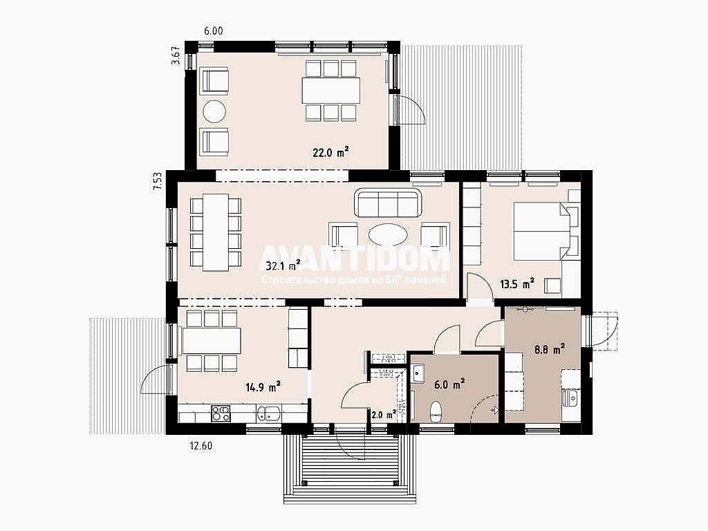 Проект дома “Речной «PinUp» отличается не только элегантным и лаконичным дизайном, но и продуманной планировкой.