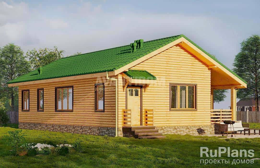 Одноэтажный дом с террасой с размерами здания 14,14 х 9,44 м. Фундамент - свайно-ростверковый с забивными сваями Наружные стены - деревянный каркас со стойкой 200х50 мм с утеплением минеральной ватой и отделкой деревянным сайдингом 20 мм по обрешетке 20 мм. Внутренние стены - деревянные каркас со стойкой 200х50 мм с теплошумоизоляцией между стойками. Перегородки - каркасные с ГКЛ. Пол этажа и чердачное перекрытие - деревянные балки с теплошумоизоляцией в межбалочном пространстве. Крыша многоскатная. Кровля - металлочерепица. Окна - металлопластиковые.