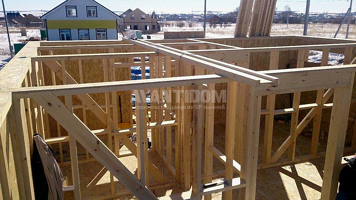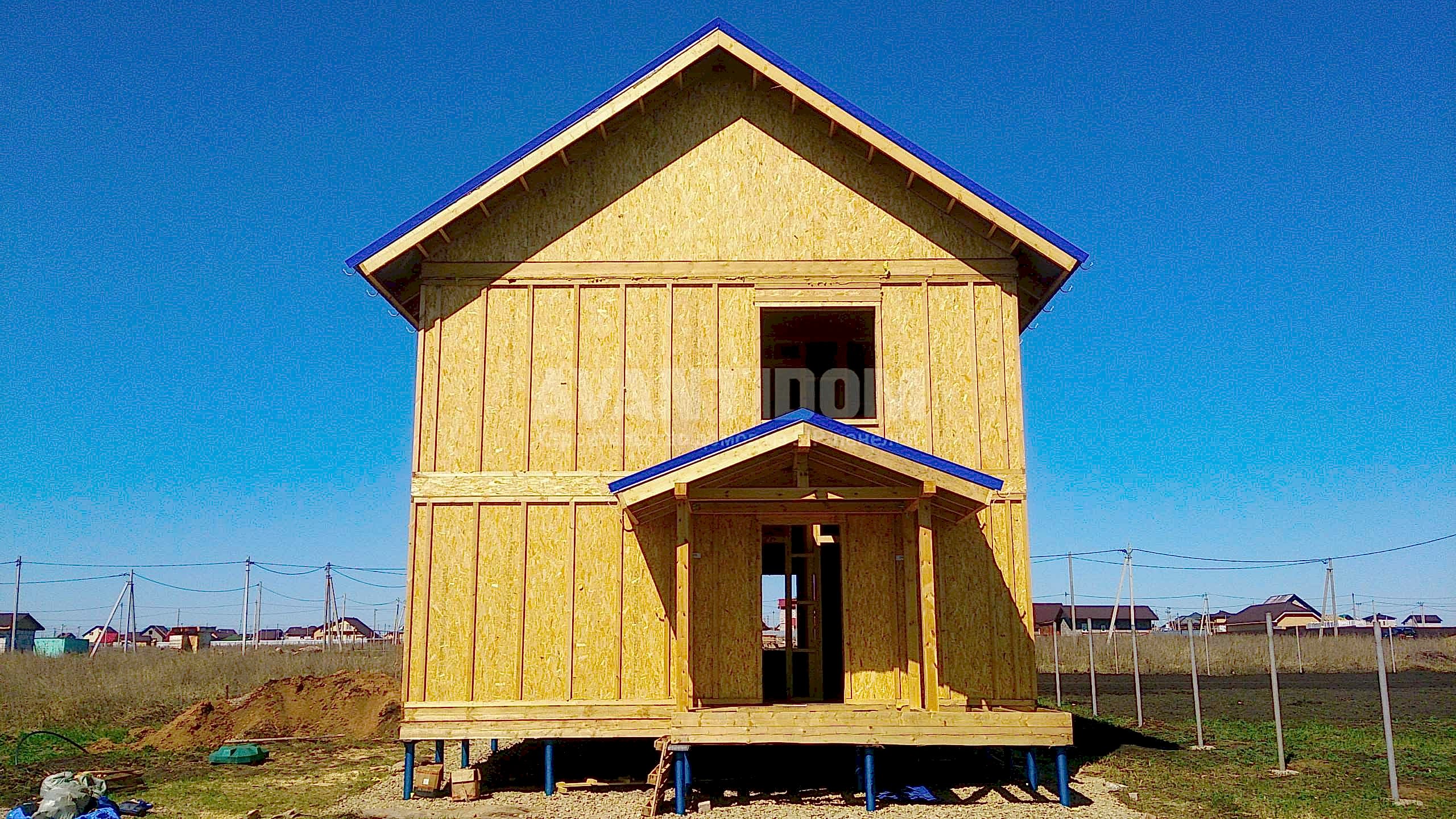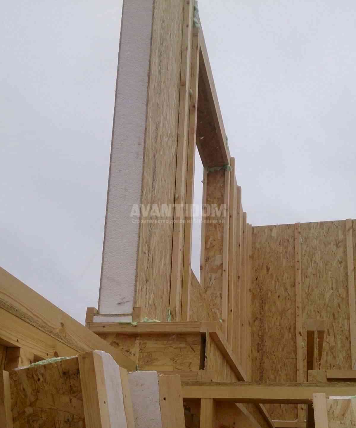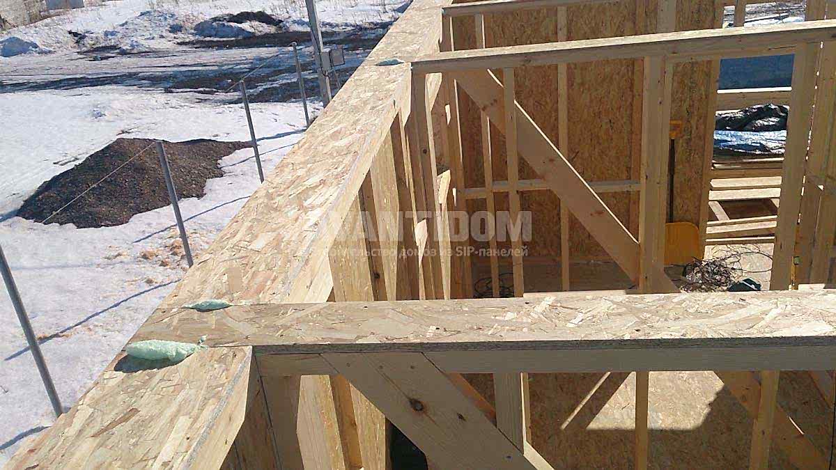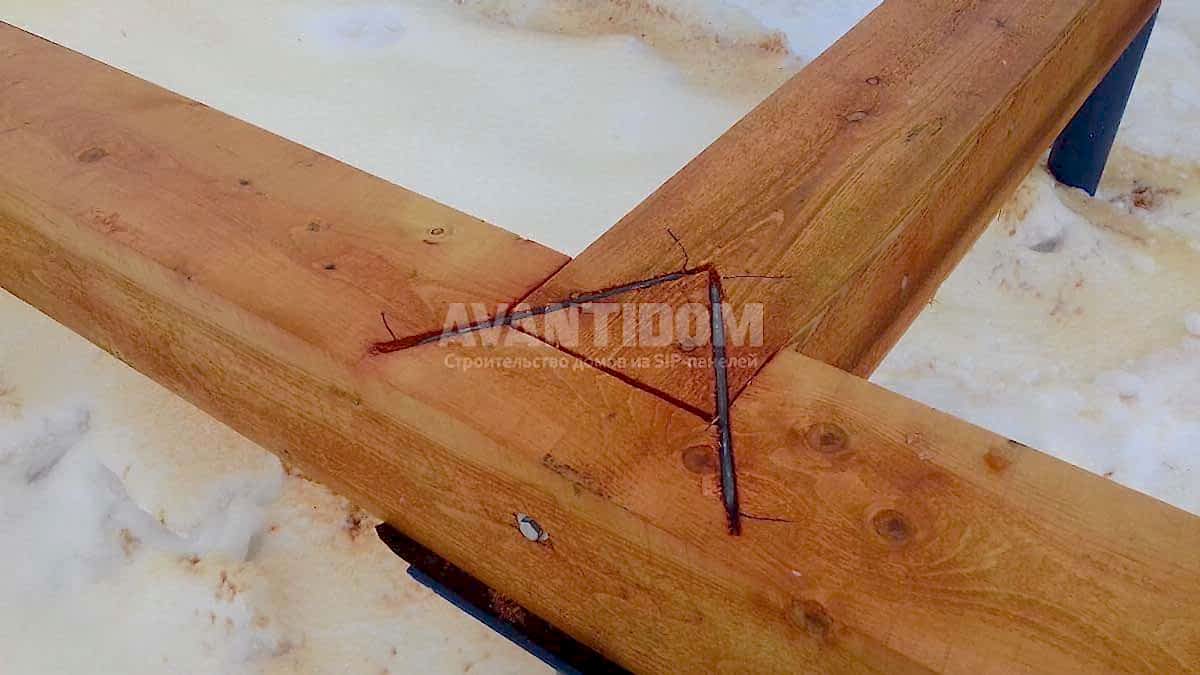 Домокомплет собран на шпонки из деревянных двутавровых балок сечением 240мм для наружных «PinUp» и шпонки из пиломатериала 150*100мм для цокольного и 200*100мм для чердачного перекрытия, весь пиломатериал обработан огне-биозащитой.