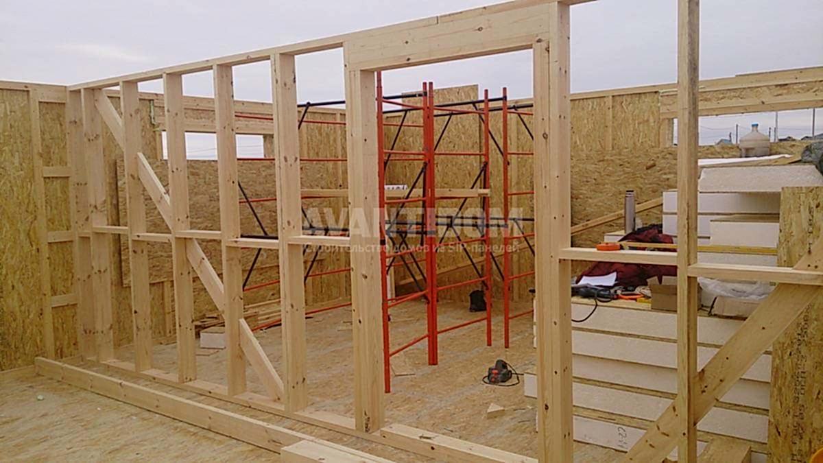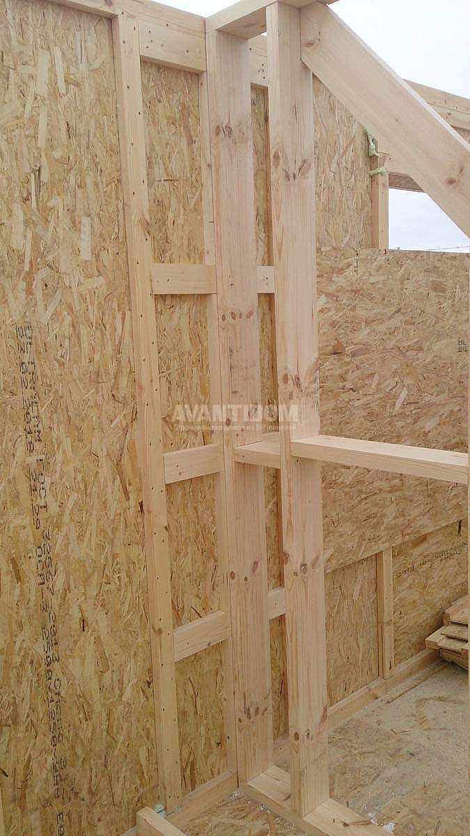 - Внутренние несущие стены и перегородки каркасные 140*45 мм и «PinUp» камерной сушки строганый.